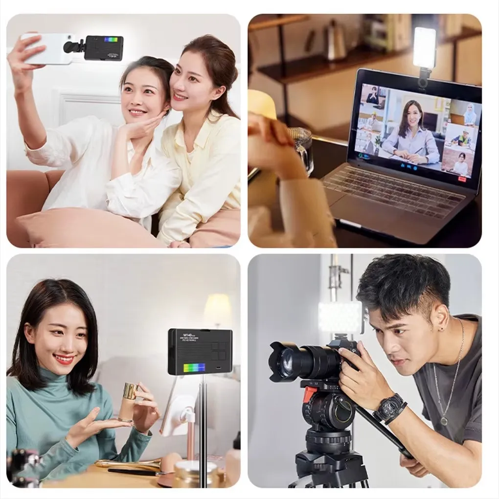 La luz LED portátil M140 RGB es un panel de iluminación compacto y recargable diseñado para creadores de contenido, fotografía y videollamadas, que ofrece luz blanca/cálida y efectos de color.
