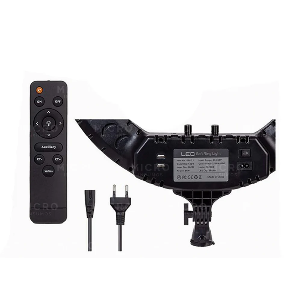 Aro de luz led de 54 cm profesional con tres tipos de luz (fría, cálida y luz natural), puedes controlar la intensidad de luz. Con 65w de potencia ideal para iluminación fotográfica, procedimientos de micropigmentación, pestañas, maquillaje y grabación de videos. Lo puedes inclinar o declinar a tu gusto.