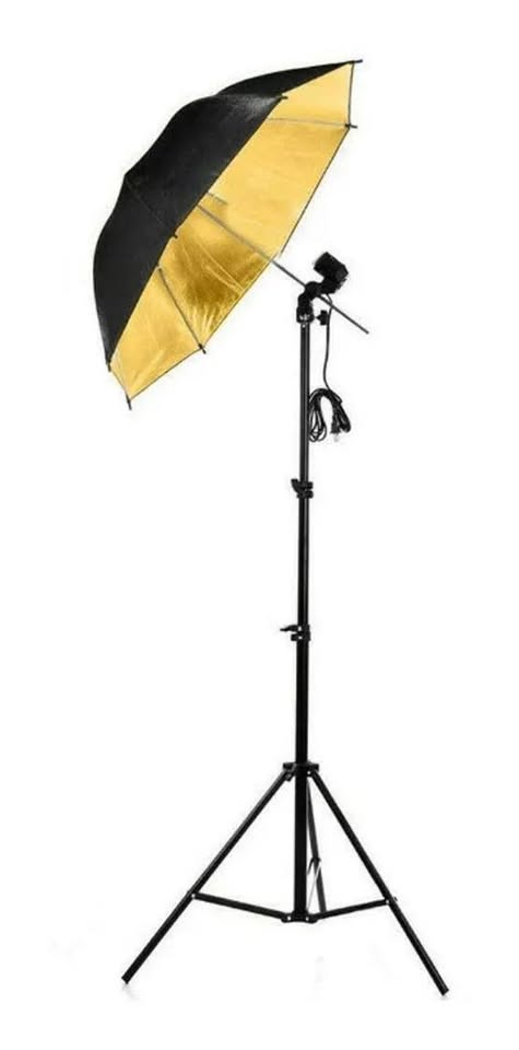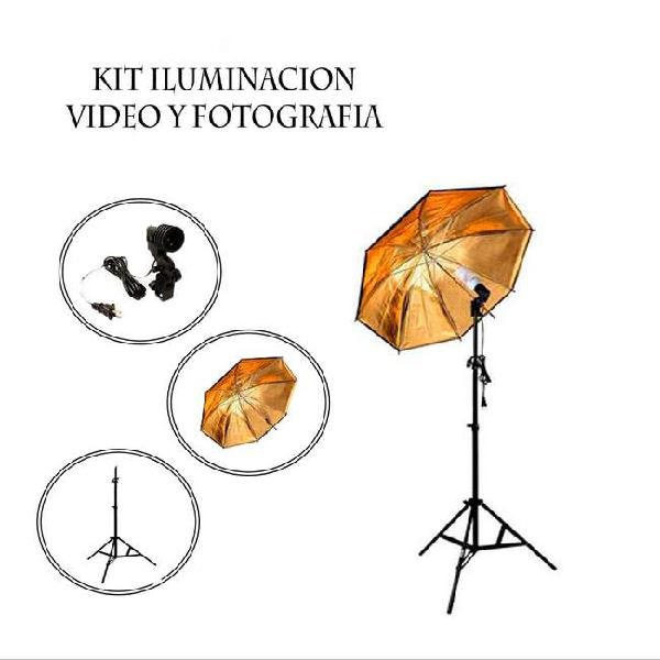 KIT ILUMINACION FOTOGRAFIA+TRIPODE+SOMBRILLA NEGRA CON DORADO+SOCKET X1+BOMBILLO 20W
