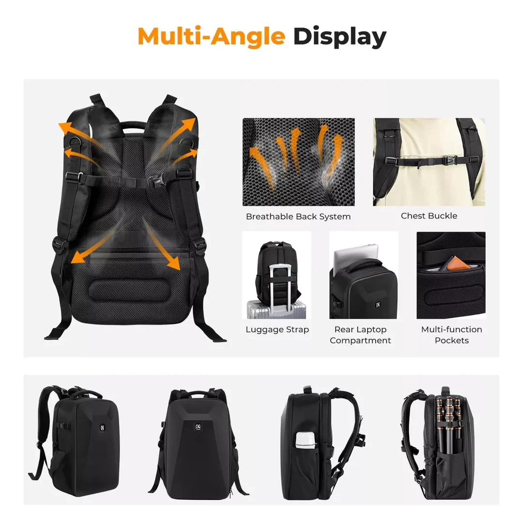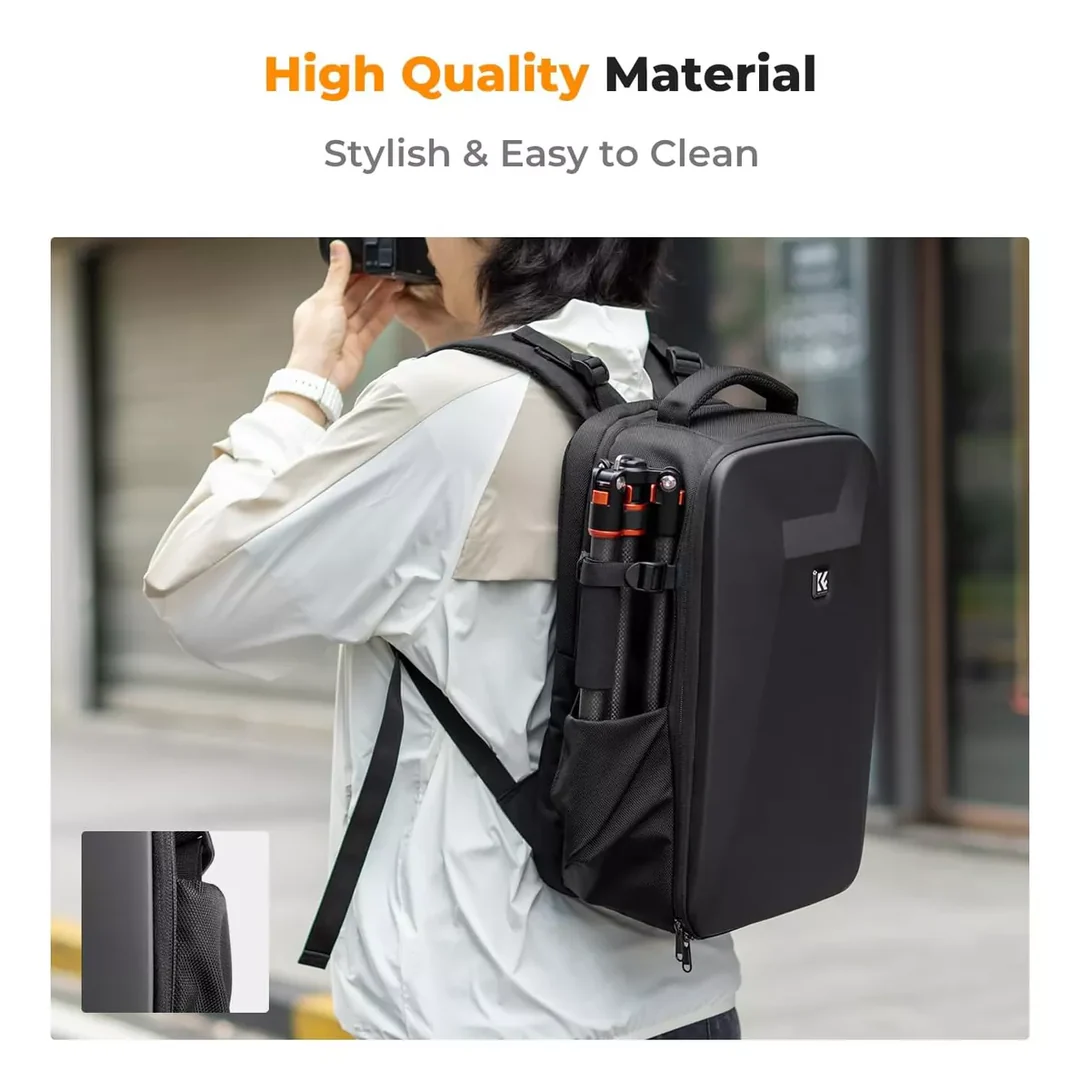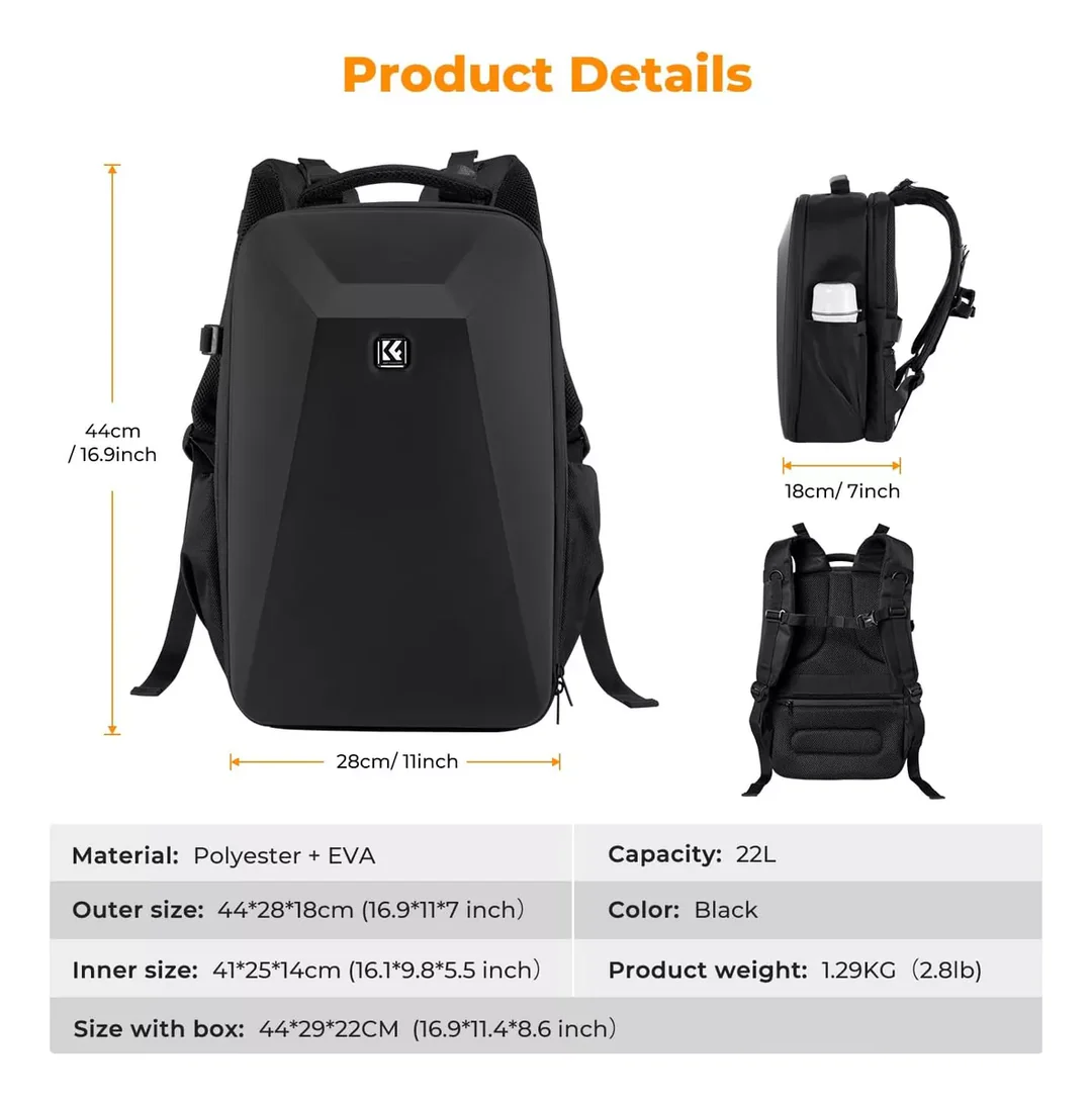 – Esta mochila rígida para cámara consta de una cubierta rígida de EVA en una sola pieza. La capa acolchada de espuma proporciona una buena amortiguación y protección para su material interno contra golpes y caídas. Protección integral para su cámara y equipo de drones.