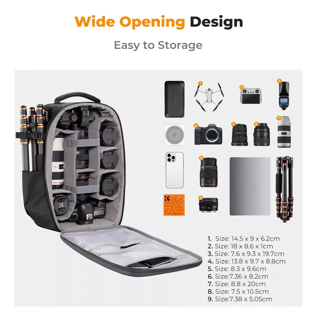 • Bolsillo multifuncional: solapa frontal totalmente abierta diseñada con carcasa dura, que evita que tu cámara se golpee y raye. Bolsa para cámara con 2 bolsillos internos para accesorios que puede almacenar cables, tarjetas SD, banco de energía. 1 bolsillo oculto con cremallera en la parte posterior para tu teléfono, cartera y otros objetos pequeños que necesitas almacenar. El soporte para trípode se presenta con 1 correa segura en un lado de la bolsa. 1 bolsillo en el otro lado puede almacenar paraguas o botella de agua.