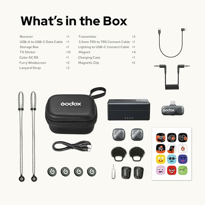 Tanto si eres un usuario dedicado de cámaras como si buscas mayor flexibilidad, el set de micrófono inalámbrico Godox Cube-C ofrece soluciones a medida. Desde los paquetes básicos optimizados hasta los versátiles kits combinados, la serie Godox Cube ofrece una conectividad sin complicaciones con múltiples dispositivos, lo que la convierte en el kit ideal para diversas escenas fotográficas. El Kit 1 de Godox Cube-C también incluye un receptor USB-C para smartphones, lo que te permite usar tu sistema de micrófono Cube-C con tu smartphone Android o un iPhone más reciente con interfaz USB-C.